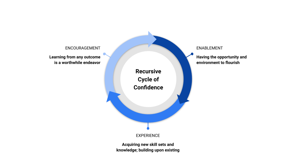 To make the most of this recursive cycle of confidence, surround yourself with people who will encourage you; and seek people who will provide the proper environment to enable you to flourish; and take advantage of any experience offered that aligns with your goals just to learn and grow from it. You’ll regret nothing…