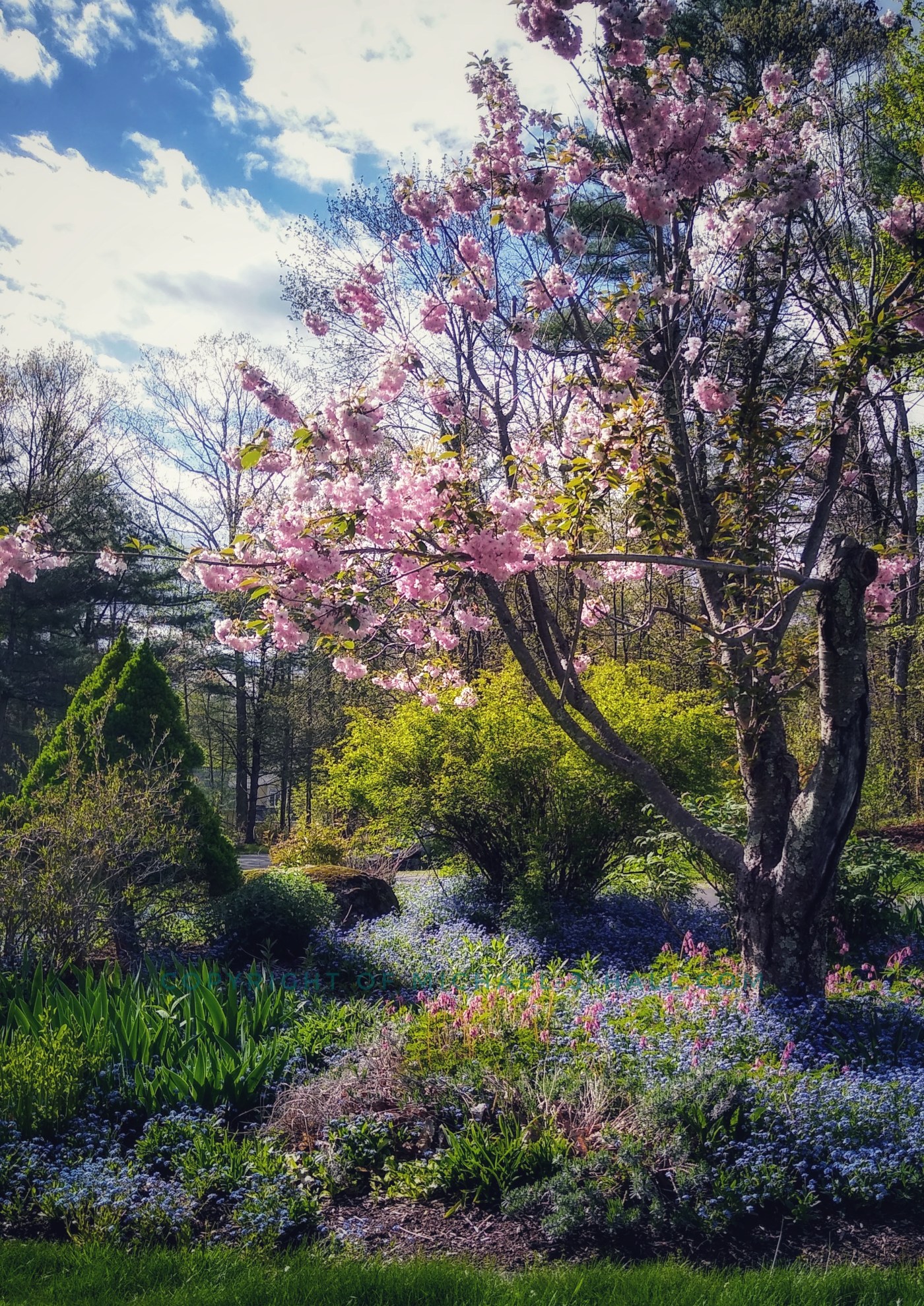 A late afternoon respite by the garden, washed warm by side light and cooled by long shadows and dewy grass beneath cherry blossoms. The rhythmic trilling of tree frogs sets the pace of my breathing. With a deep inhale I catch a slight peppery taste of pollen on the air, but rinse it immediately away with the humidity and salty persperation gathering around my lips. A long exhale pushes away the no-see-ums and other annoyances buzzing about my head. “You did what you could this day. Now let it be.”