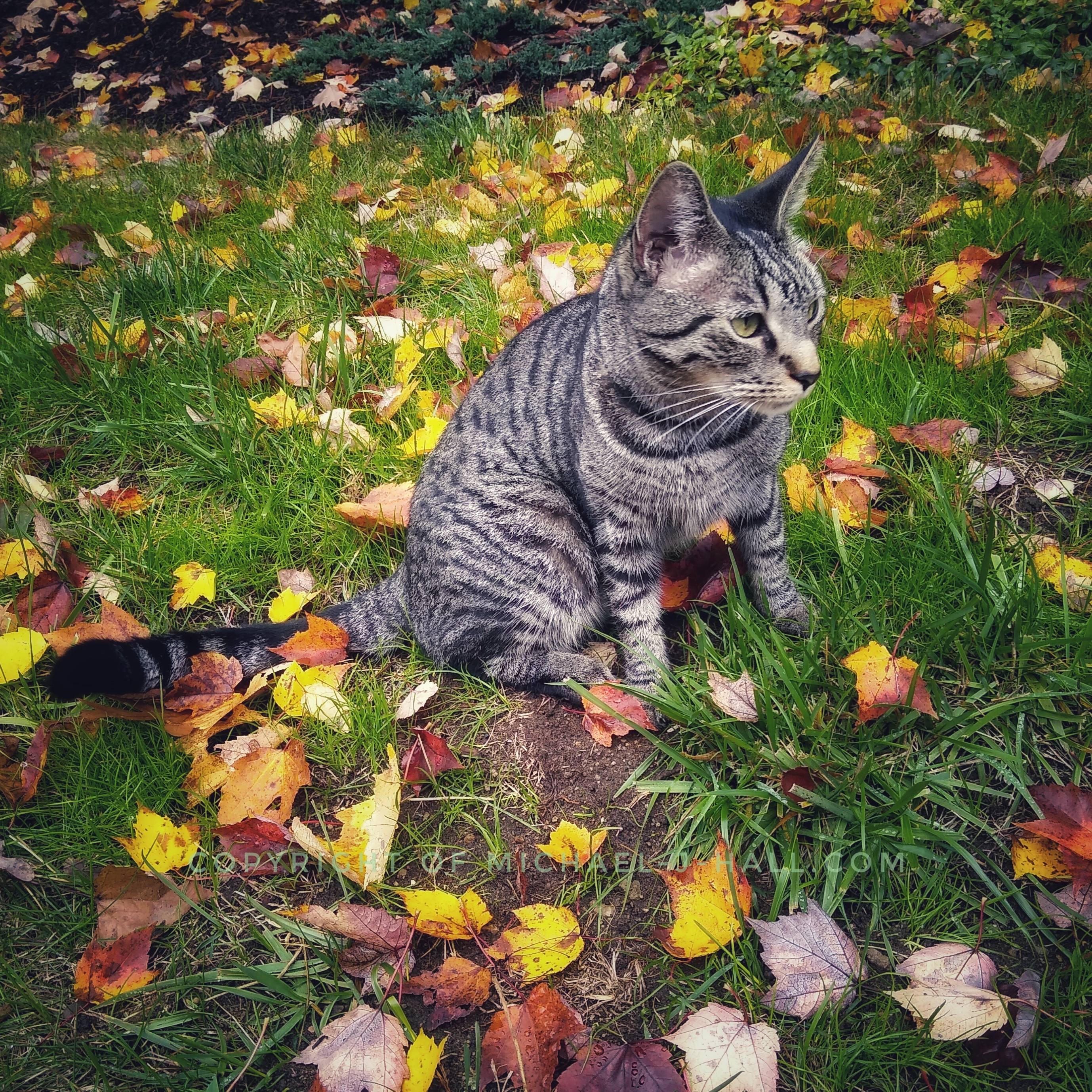 Down the lengthy driveway from my house there is a metal box affixed to a granite post. I wonder if any unexpected surprises from the postal service await me this day. On my route, a strange, but friendly feline saunters up to greet me. Its fur is a mix of grays arranged in softly contrasting bands, and its bright eyes convey a sense of curiousness as it approaches. It rubs against my leg in one direction then the other, meowing sweetly, as if to say, “Hello, have we met before? Might we be friends already?” Offering the cat a gentle pat, it responds with a appreciative nuzzle against my hand. We both seem to acknowledge the simple joy that this encounter has brought to our otherwise routine day. After a short while, the cat gracefully continues on its journey, leaving me with a sense of warmth from the unexpected visit. My face and mind fills with contentment and I turn back toward my house, forgetting whatever else had been planned for my day.
